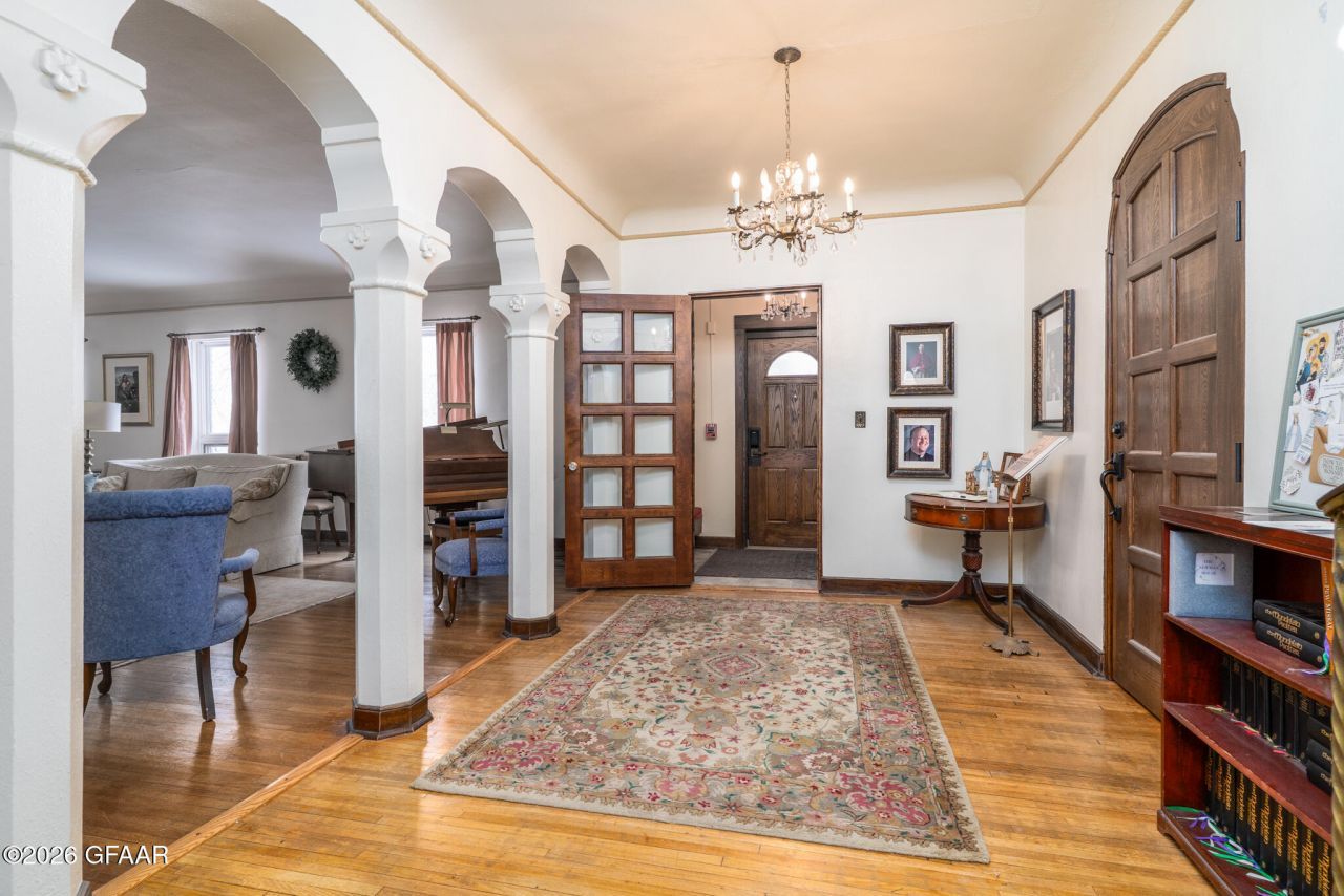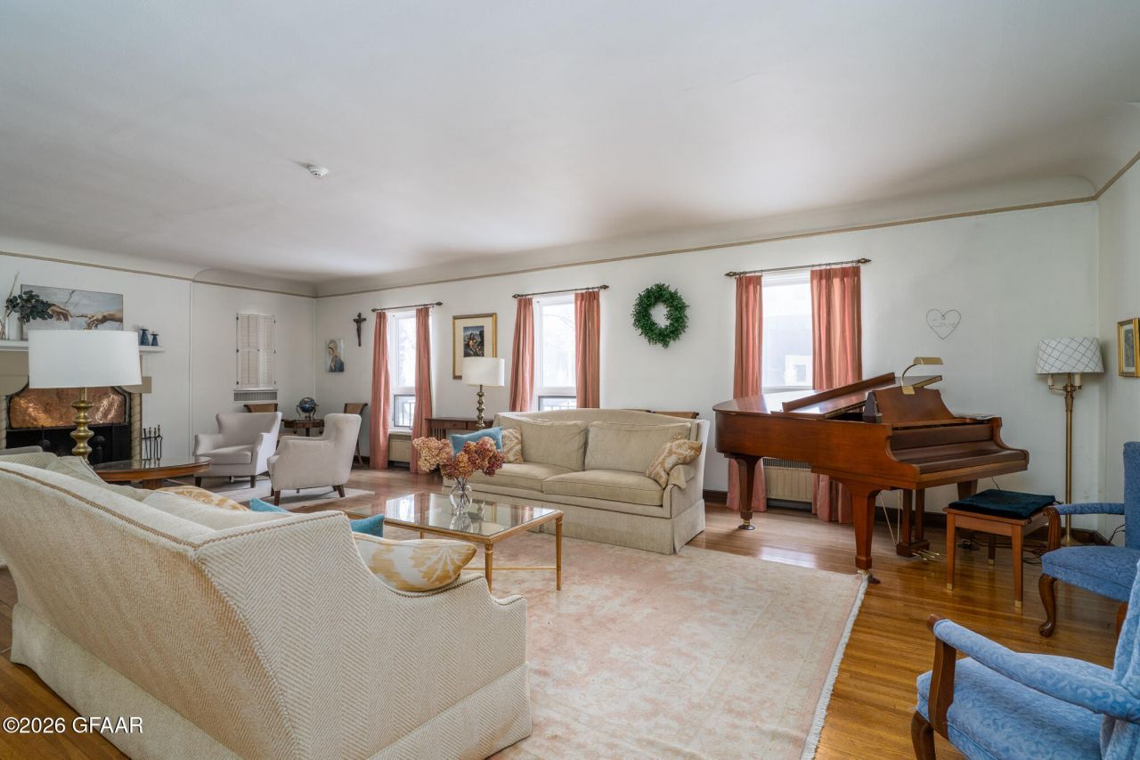 Historic 1925 masonry brick construction adjacent to UND campus. 9,051 SF with 2.5 stories + basement. 21 rooms across 3 levels with max occupancy ~30. Commercial-grade kitchen, 4 multi-fixture baths, 1 3/4 bath. Original 1925 structure plus 1962 addition. Tile roof. 5 on-site parking spaces with existing UND parking agreement. Zoned SFR/Duplex/Greek. Ideal for Greek housing. Rare opportunity adjacent to UND campus.