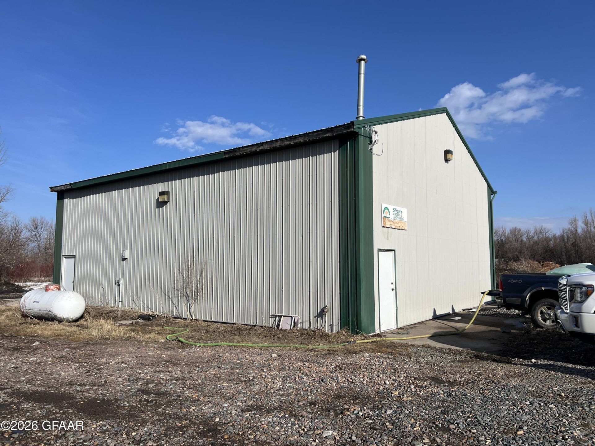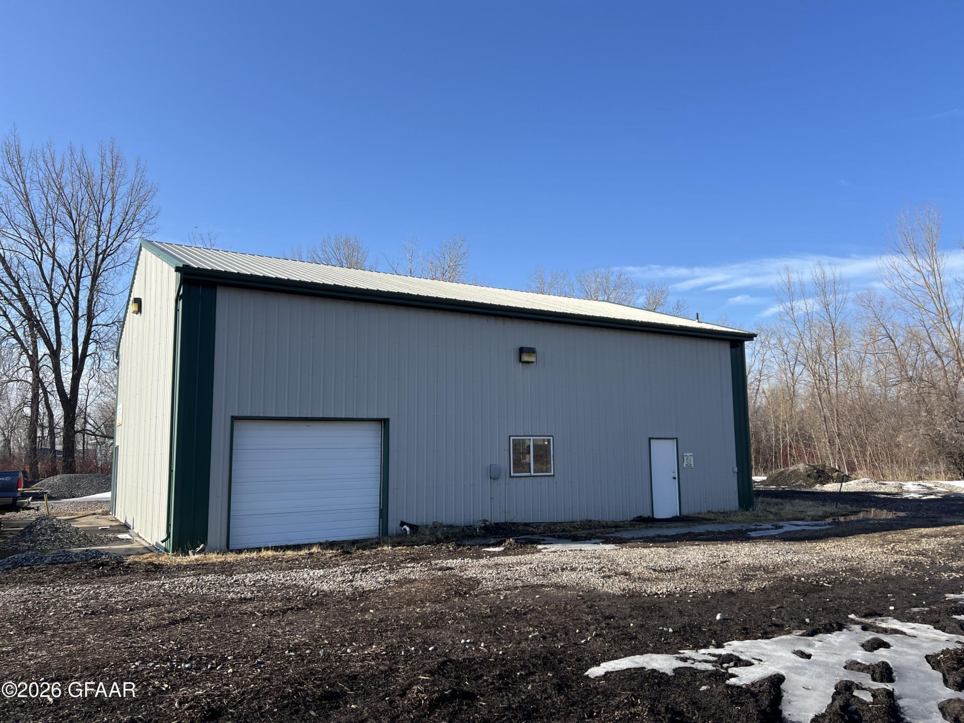 50' x 40' insulated building featuring two overhead doors - 10' x 8' and 14' x 14'. Situated on 2.46 acres just north of town near I-29, offering excellent access and low property taxes.